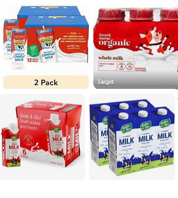 - Milk (whole, 2%, 1%, fat free, non-dairy, chocolate, we don’t really care what kinds) Shelf stable milk is best