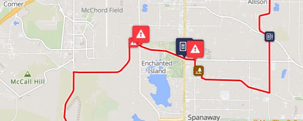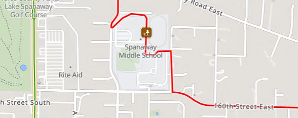 The route includes 72nd Street to Waller Road, to Military Road (160th). Please be careful at the 4-way stop on Military and 22nd Avenue! Then they turn at Thompson Elementary to come in the back side of Spanaway Middle School, but some will also cruise to B Street, Safeway, and Albertsons. They exit Spanaway on Military Road toward Spanaway Loop, then on toward the end of McChord Field to take the back road into Roy. [SR507 occasionally sees a bicycle, but there were too many accidents along Pacific Ave. and SR507 in the past, so that portion was abandoned.]