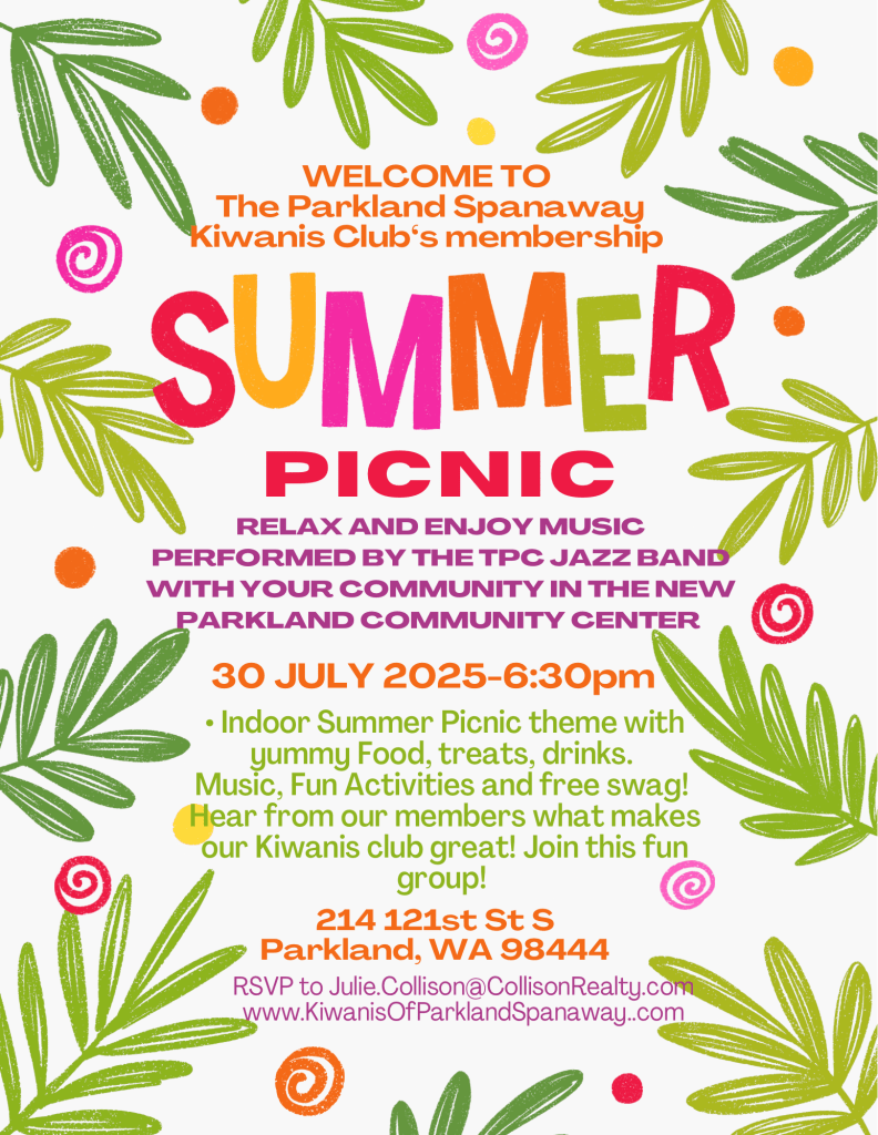 You’re invited to join us for an evening of good food, great company, and community connection at the Parkland-Spanaway Kiwanis Open House & Picnic! See attached flyer if you like.