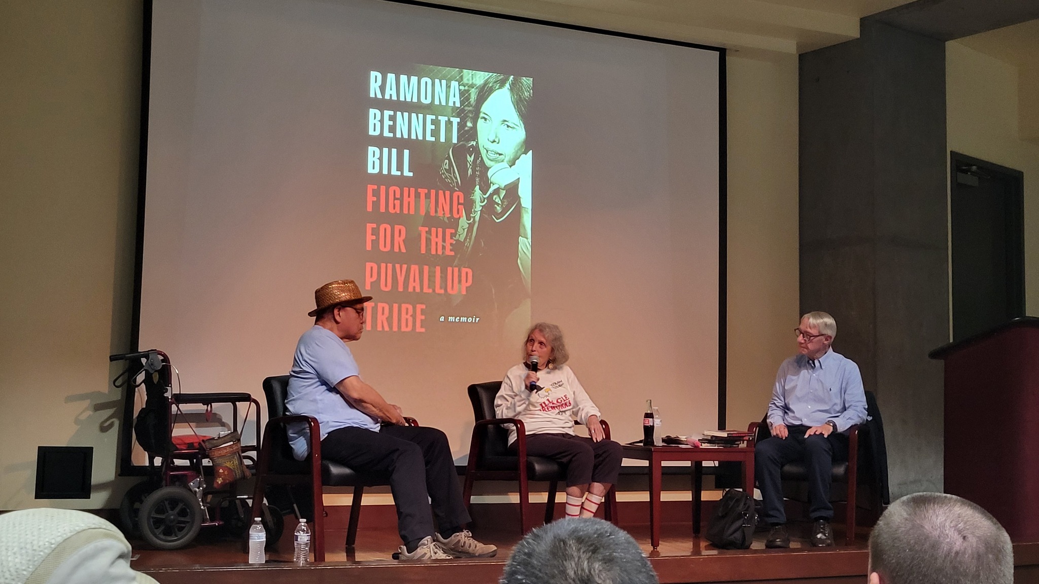 Bennett Bill has written a memoir, Fighting for the Puyallup Tribe. People present in the room acknowledged this should be mandatory reading for all Washington State history students. She includes memories of her family of boarding schools, fishing rights, the Fish War, the Boldt decision, treaty rights, the red power movement, and more.