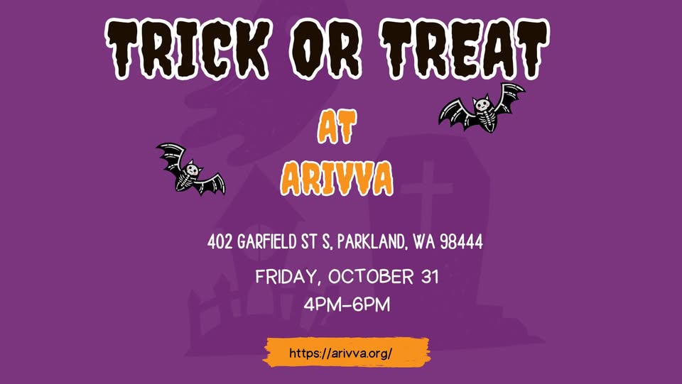 On Halloween, you will find the Trick or Treat on Garfield Street in Parkland. Various businesses on the section of Garfield Street, east of Pacific Lutheran University will have tables out on the street with candy and other treats for kids. This event is Friday, October 31, from 4 to 6p.m. This flyer is online at Arivva’s Facebook page.