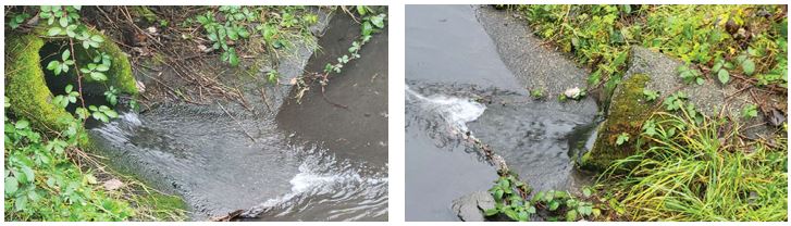 The west side of C Street bridge in Parkland over the Clover Creek diversion channel contains two stormwater ducts from local street runoff. This stormwater flows directly into the water of Clover Creek. If you stand on the bridge, you can see them.