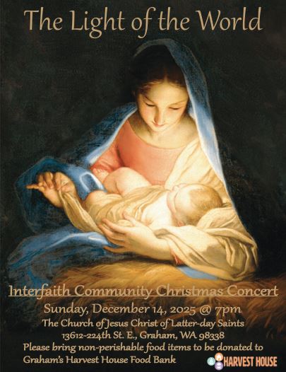 This is a don’t miss event if you love Christmas music and local talent. Bring your food pantry gifts and join other locals for the Interfaith Christmas Concert and Food Drive on December 14, at 7 p.m. The event takes place in the Church of Jesus Christ of Latter-day Saints in Thrift, 13612 224th St E, Graham, WA 98338. Local schools and local talent are featured in this amazing event. Afterward, the church also provides cookies and cocoa, so prepare for a delightful kickoff event to your Christmastime celebration.