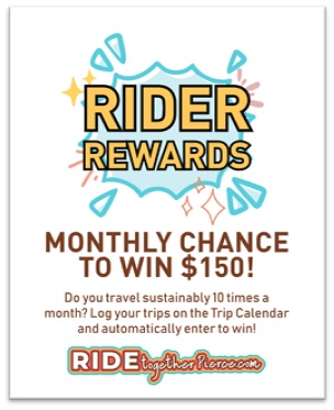 Pierce County’s sustainable transportation program “Ride Together Pierce” is proud to present a new monthly rewards program: Rider Rewards! This program will reward one lucky sustainable traveler with $150 each month* in 2026!