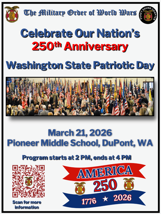 Come join the America 250 celebration and Washington State Patriotic Day (WSPD), a free public event designed to celebrate patriotism and honor active-duty military, veterans, and first responders for their service.