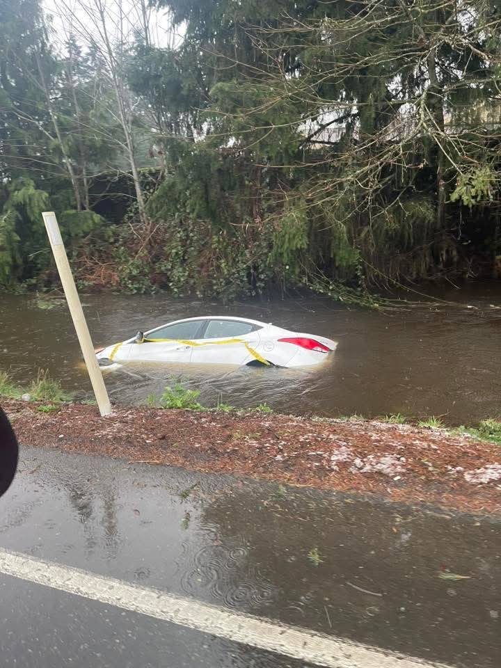 The photo below was taken during the time of March 11 to March 16, the period this car was said to be in Clover Creek near Washington High School. The car should have been removed immediately, if not by the driver, then by the jurisdiction. The driver, owner, and possibly Pierce County could face fines because this hazard was not immediately removed. Fluids such as battery acid, hydraulic fluid, transmission fluids, and gasoline all were potential risks to the water and wildlife.