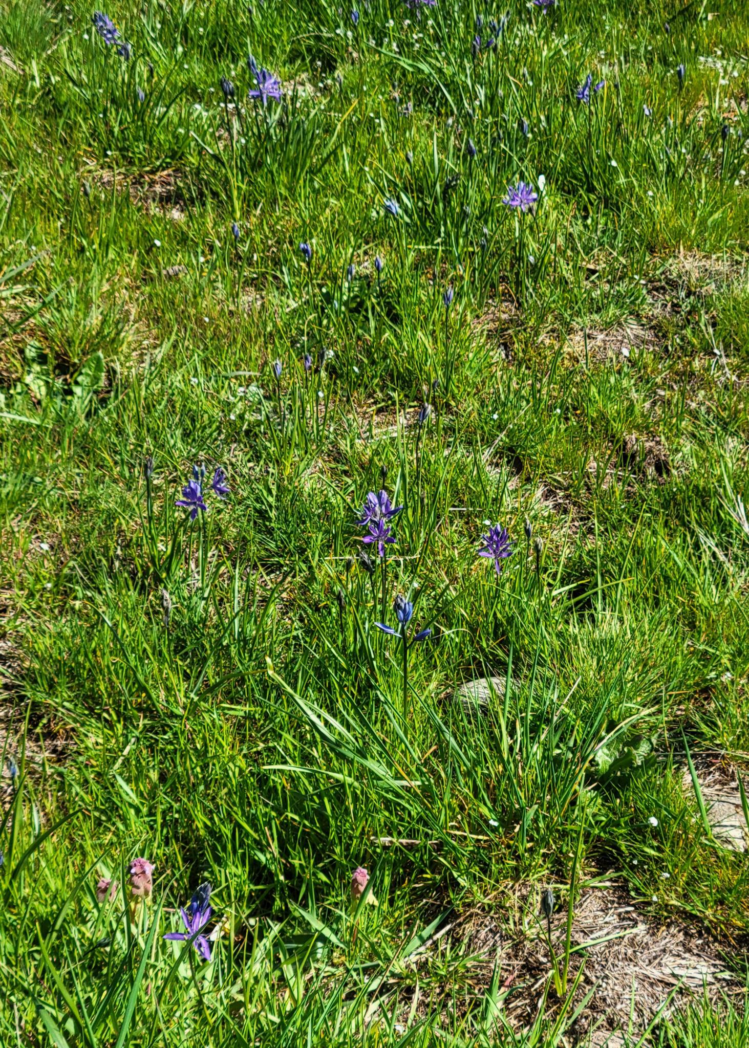 But there’s a trick. You might see them along a road in the ditch, but not coming up in your fresh mowed lawn. If you know them, don’t mow them. Go around a patch of camas, let it bloom and mow it when the blooms fade.