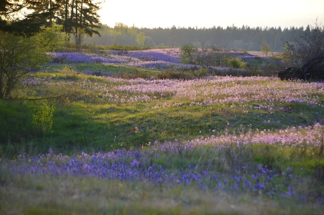 What’s camas? I am glad you asked, because it is not just any prairie flower. The prairie we live on is its home, but the bulb was a staple food for the local people of the tribes. Over meadows and sunlit prairies, the camas (kwetial, quamash, or wild hyacinth) thrive here in South Pierce County.