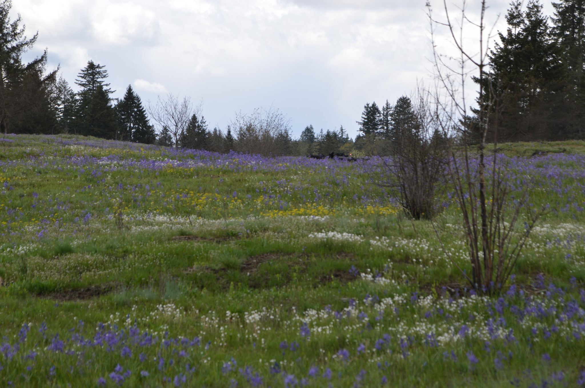 When settlers arrived, they brought many plants and favorite flowers with them. Invasive species like Scotch broom, ivy, and Himalayan blackberry started taking over the prairies where they were not turned over for crops. But if you look carefully over the next few weeks, you just might spot some camas. Even the logo for the Pierce Prairie Post has camas.