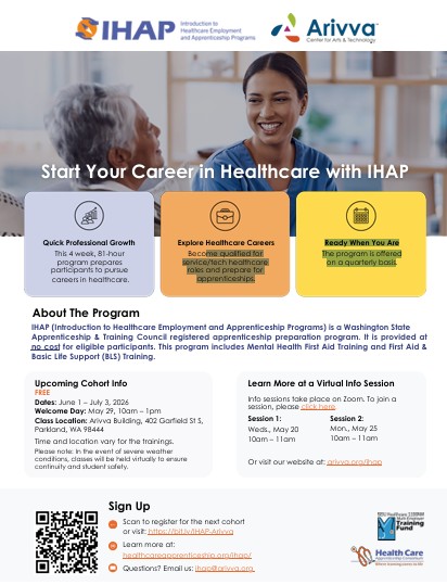 Arivva is excited to once again offer its free Introduction to Healthcare Employment and Apprenticeship Program (IHAP). As we launch our 7th cohort, we invite individuals to take their first steps toward a meaningful career in healthcare.